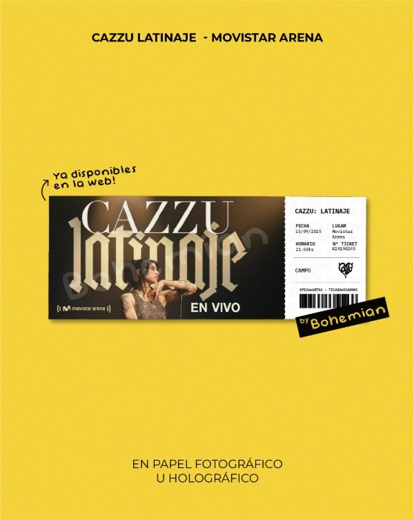 Entrada de Cazzu "Latinaje", Movistar Arena. Podes pedirla con la fecha y ubicación del show que quieras!
