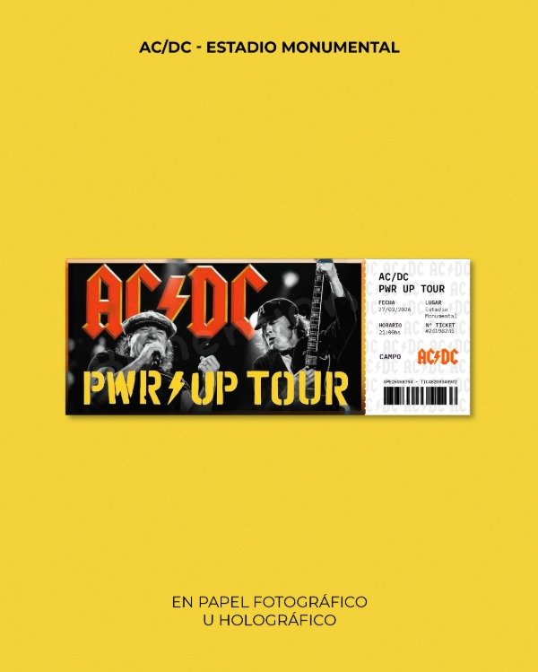 Entrada de recuerdo de ACDC en Estadio Monumental. Podes pedirla con la fecha y ubicación del show que quieras!