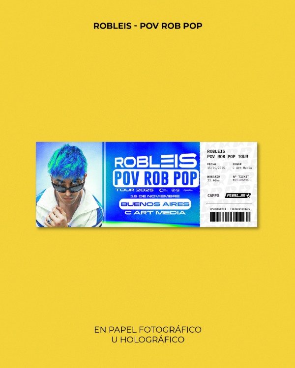 Entrada de recuerdo de Robleis en Art Media. Podes pedirla con la fecha y ubicación del show que quieras!