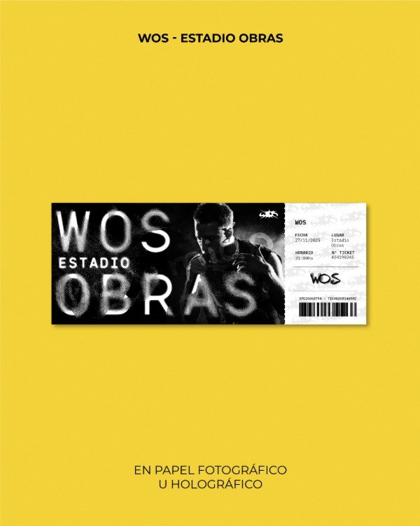 Entrada de recuerdo de Wos ne Estadio Obras. Podes pedirla con la fecha y ubicación del show que quieras!